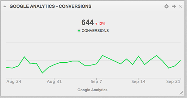 Google Analytics Widget > Conversions > All Sessions (Depending on the site, I may have separate widgets for traffic sources, i.e. organic and social):