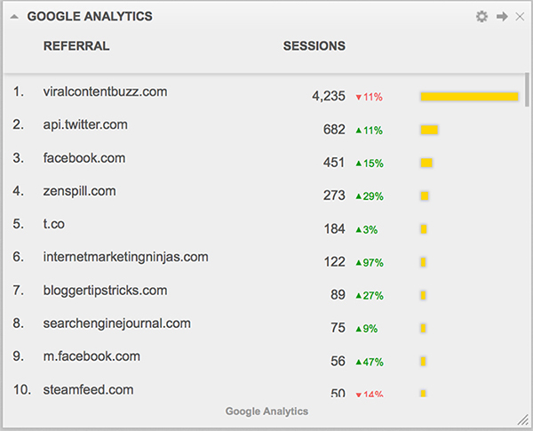 Google Analytics Widget > Referrals