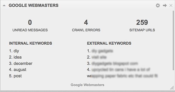 This widget gives me a nice overview of Google’s crawl errors, keywords and new messages. It’s very important to have it handy.
