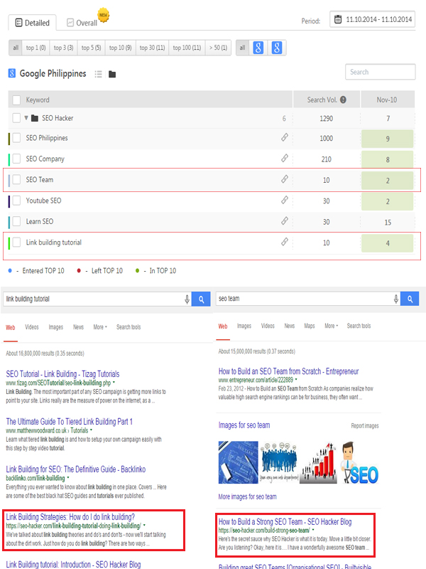 Above part is the results from SE Ranking tool, while the lower side is the results from Google Philippines.