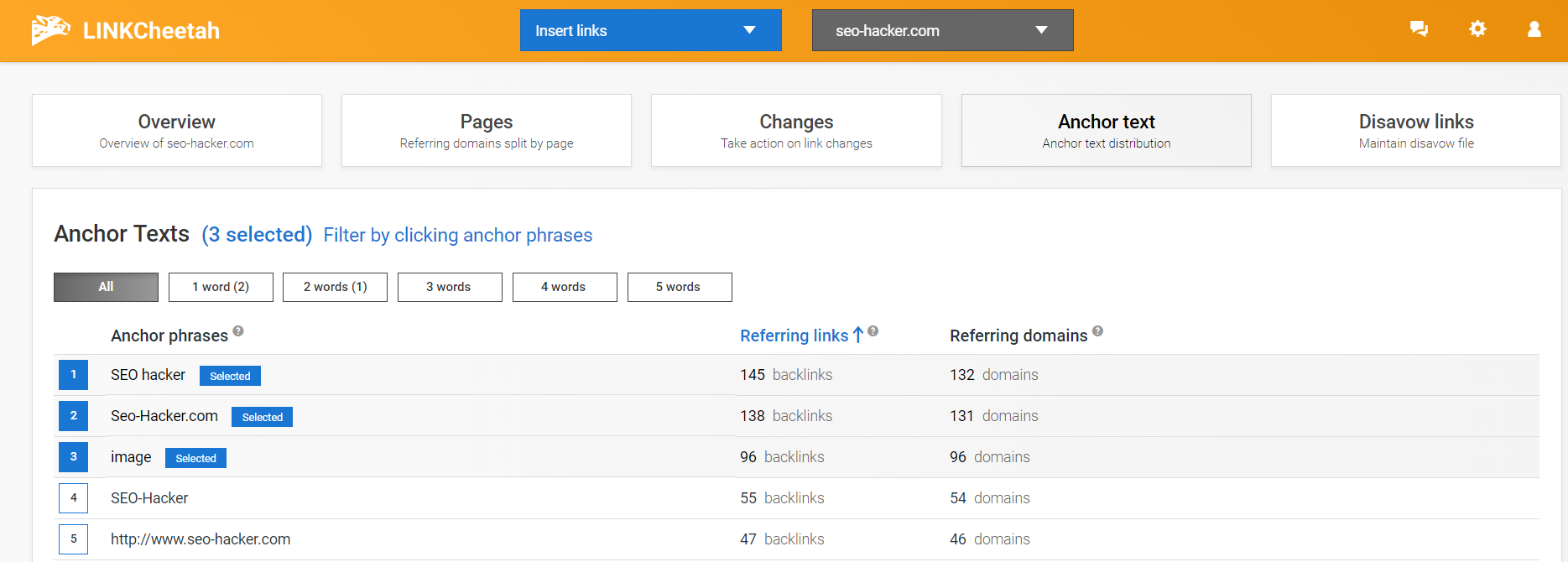 Along with being able to view the websites that contain your backlinks, you can also look at the anchor text as well.