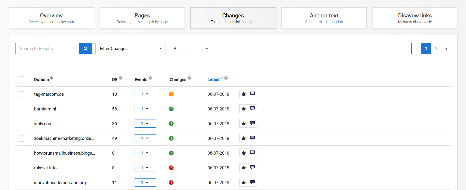 The third feature on Link Cheetah is Changes, which allows you to view the links that have experienced changes for various reasons. Tracking these links are crucial, as these changes can impact the amount of traffic that you will receive. Some of these changes include a dofollow link becoming a nofollow link, or a link getting removed from the Google Index.
