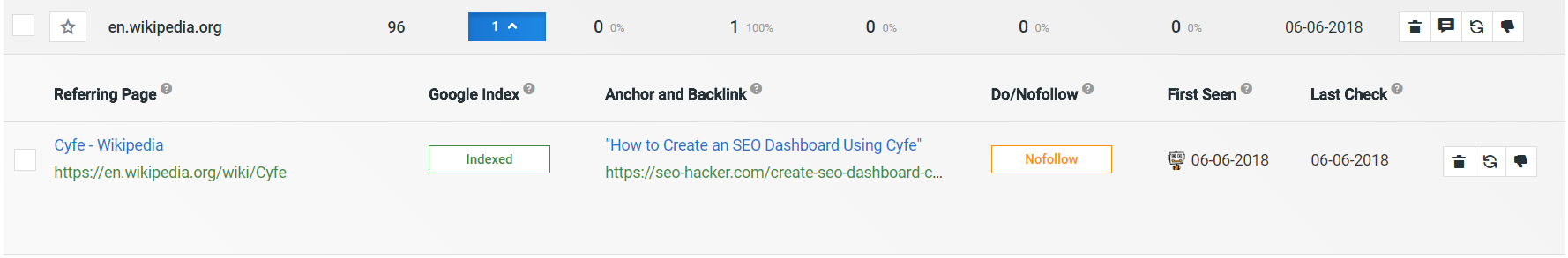 For a closer look into these domains, you can click on each of them to receive extra details, such as the referring page, Google Index, Anchor and Backlink, and a Do or Nofollow indicator. Having this amount of detailed information allows you to analyze the all of the links within your website.