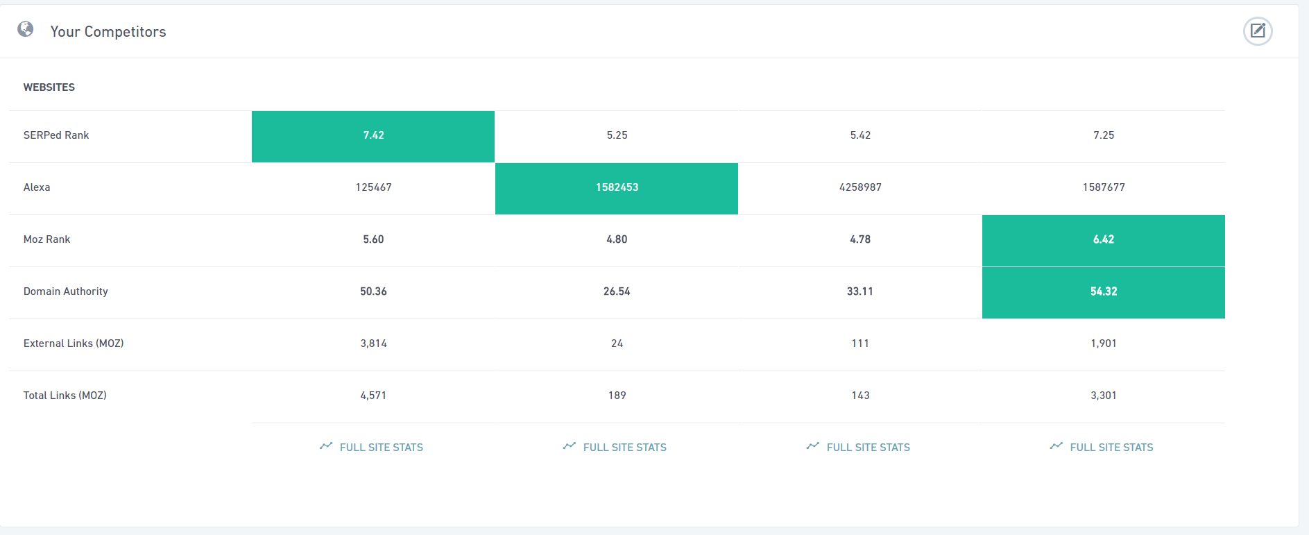 The Your Competitors tab shows you how you are stacking up with the similar companies in your field. This would help you track the progress of your competitors while helping you assess your own progress.