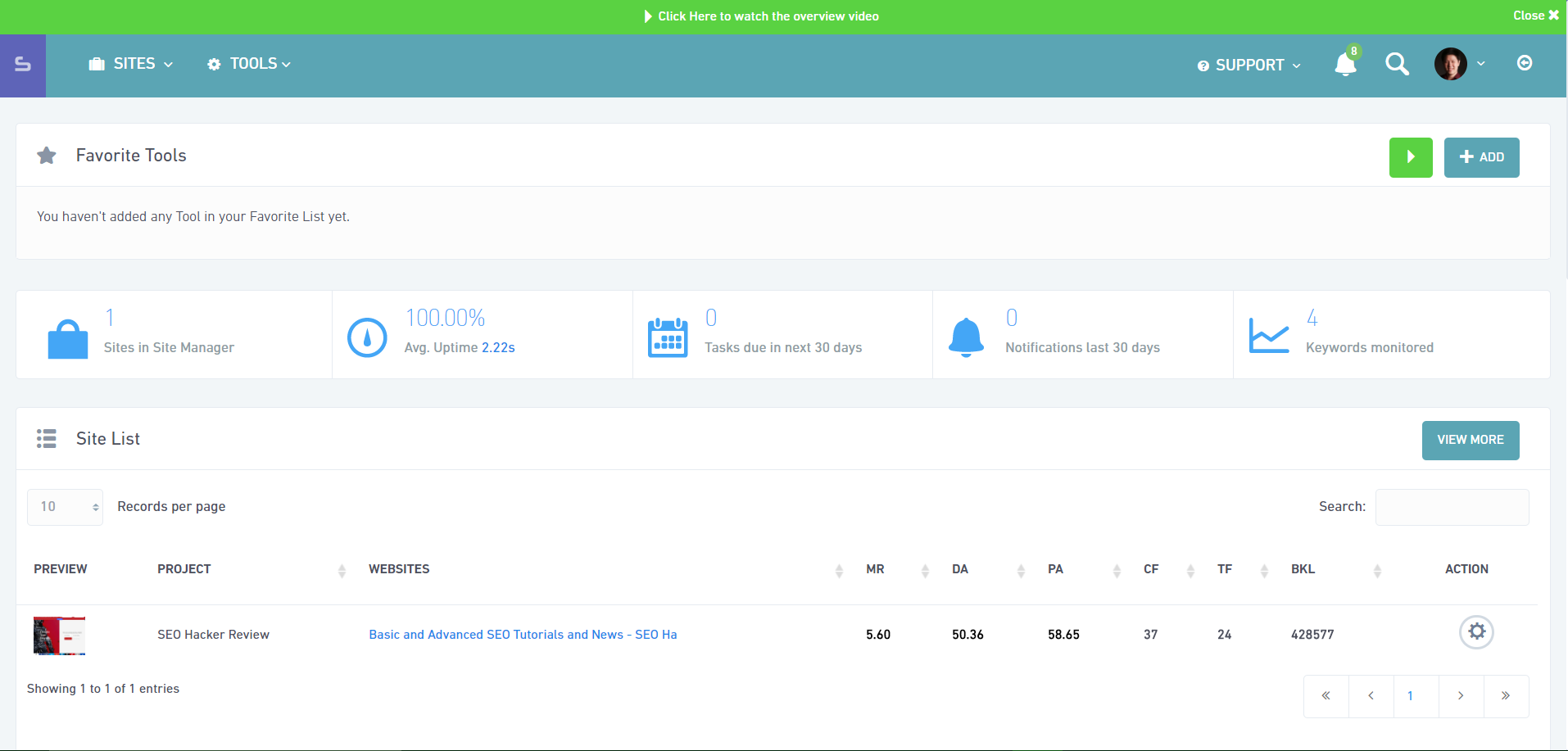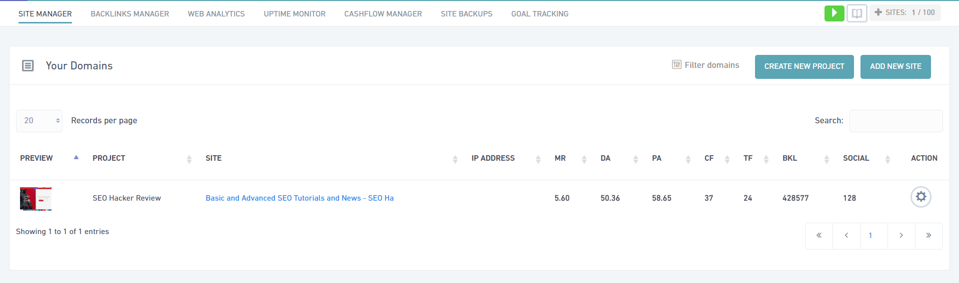 - Site Manager – The site manager is where you would be accessing your projects, which would help you see how the domains are doing. You can also use the web analytics tool to see how they rank in search engines and use goal tracking to see if a domain is reaching certain milestones.