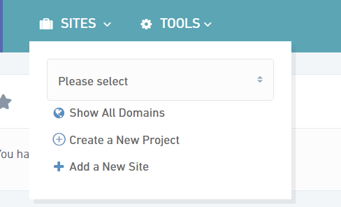 The sites section allows you to navigate through the different domains that you are currently working on. You also have the option of adding a new site or even create a new project altogether.