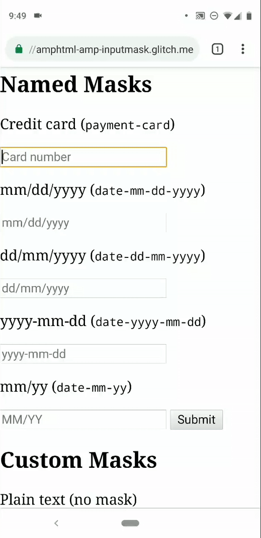 To make this process a more efficient on AMP websites, input masking has been made available. Input masking allows you to add the right formatting and characters to your online forms, allowing users to accomplish them with more efficiency. With more users registering their information online, having a better system makes a big difference.