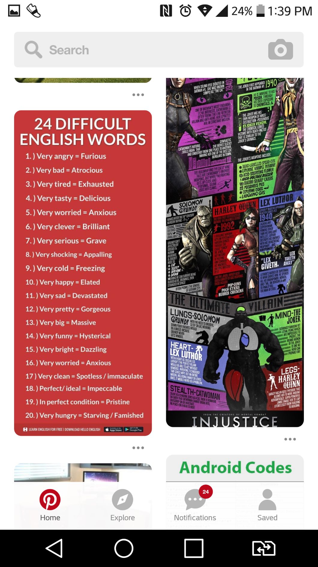 To start a visual search on Pinterest, tap on the camera icon on the search bar, and take a picture of what you want to have searched.