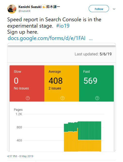 Aside from podcasts showing up in the SERPs, Google I/O has another good news for SEOs around the world. They’re finally adding a Page Speed Report in Google Search Console. This is an awesome addition to the constantly improving features of Google Search Console and can definitely improve our lives as SEOs.