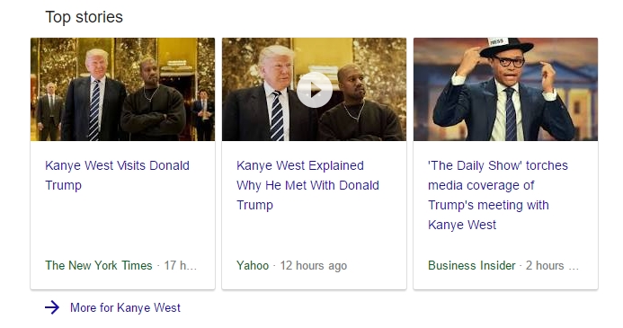 With regards to the search terms that I used such as Kanye West, Donald Trump and Rick Fox, most of the content featured in Top News are pretty relevant to my search terms. Another thing that I noticed is that the search results don’t seem to be following a pattern. What I can surmise from these findings is that what qualifies as “Top Stories” for Google is still up for debate but I’m confident that Google will at least release some guidelines for Top Stories in the following weeks.
