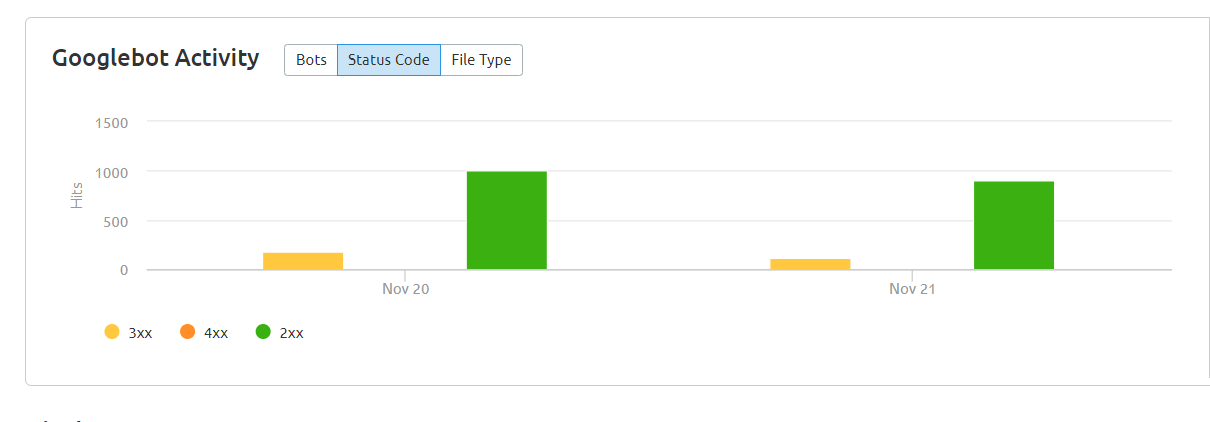 The next graph shows you the number of pages that Google bots were able to hit, along with the status codes of these pages divided into days.