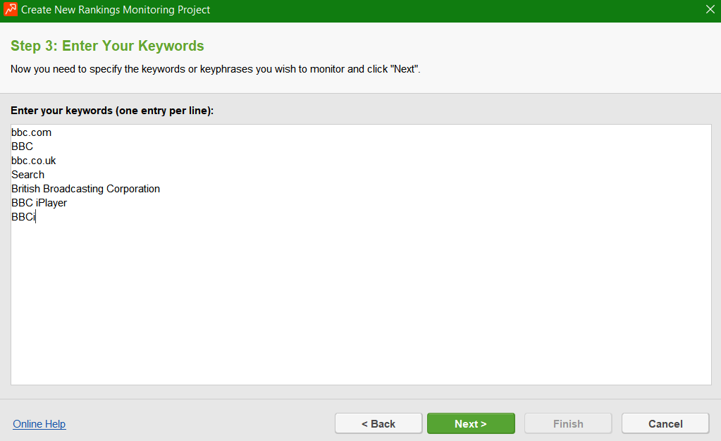 The third step is adding the keywords that you want to track in your website. You can add as much as you would want to ensure that you track important keywords that drive traffic.