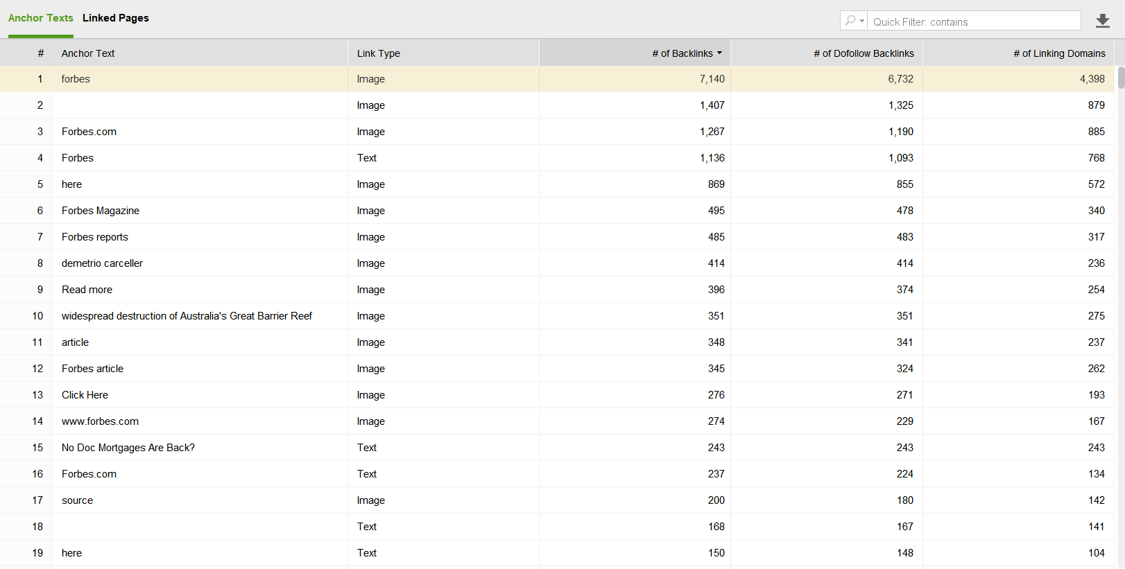 Anchor text allows you to view which words and text do people click to go to the backlinks.
