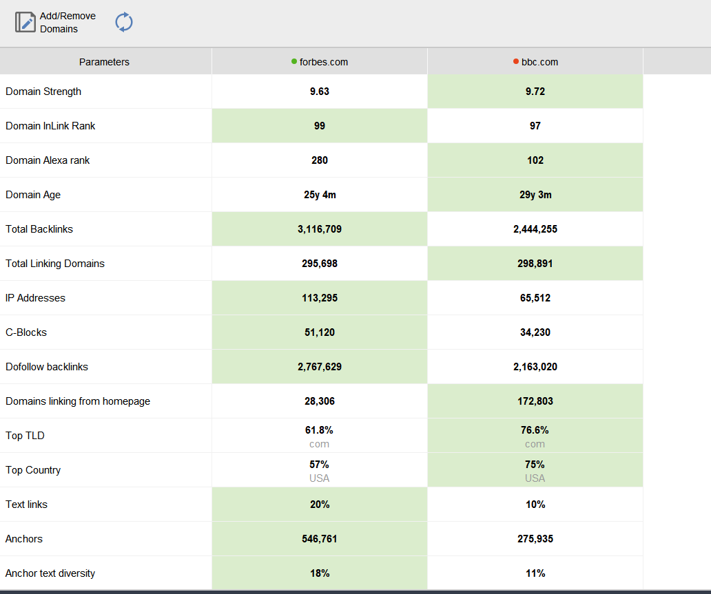 Lastly, the domain comparison enables you to compare domain ratings, backlinks, domain age, top TLDs, and the number of anchor texts. This allows you to quickly compare your website to competitors and how it stacks up. This allows you to make competitor analysis a much more elaborate and efficient process.