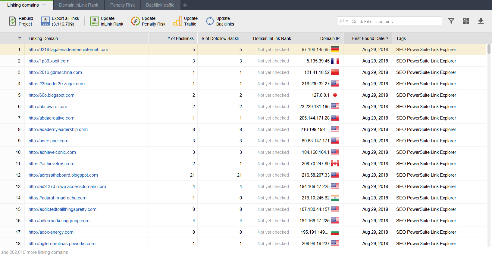 The second tool that I’ll be reviewing is the SEO Spyglass, which is a tool that takes a look at the backlinks within your website. Similar to starting a new project in Rank Tracking, all you have to do is to enter the URL of the website, and the Spyglass will be analyzing the backlinks.