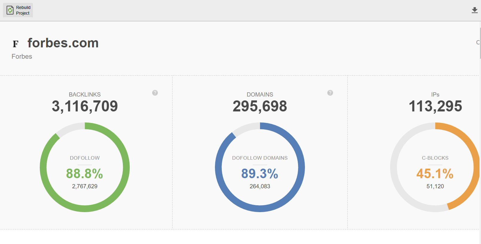 The summary page allows you to view in concise detail all of the statistics about backlinks, including links connected to the home page, and the countries where the backlinks originate from.
