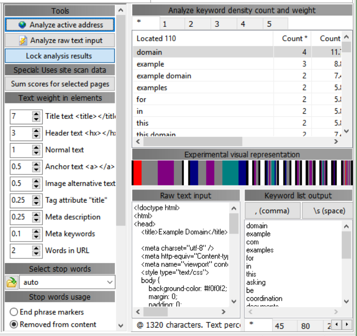 Along with website and link analysis, TechSEO360 also allows you to analyze al of the keywords present within your website. It would track how many of these keywords are present, their weight, and the overall keyword density. This would help you see how well are your keywords performing, and if the density is too high or too low for certain keywords.