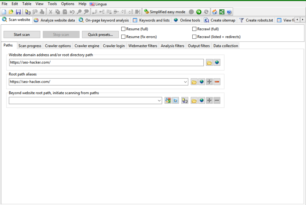The first feature that you’ll be seeing after logging into the tool is the website scan. The scanning is simple, as all you need is to type in your domain address and start scanning. You can also navigate between crawler options and various filters to be able to scan more specific details for your website. This wide variety of crawling options help you get all the necessary data that you need to see how your website is doing.