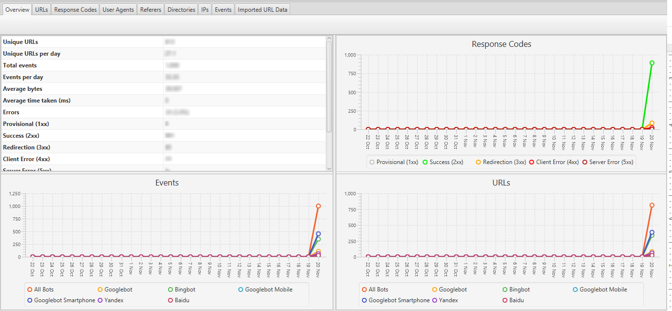 When you’ve collated all these data, the next thing to do is to analyze it to understand how Googlebot and other crawlers go around your website. There’s a great number of tools you can use such as Splunk, Loggly, or you can even analyze your log files through Microsoft Excel. In the screenshots above, I used Screaming Frog Log Analyzer to open the log files of the SEO Hacker blog. The first step to analyzing log files is to use a tool that you’re comfortable with. Other SEOs I know primarily rely on Splunk, while I mostly use Screaming Frog Log Analyzer. Here’s what it looks like: