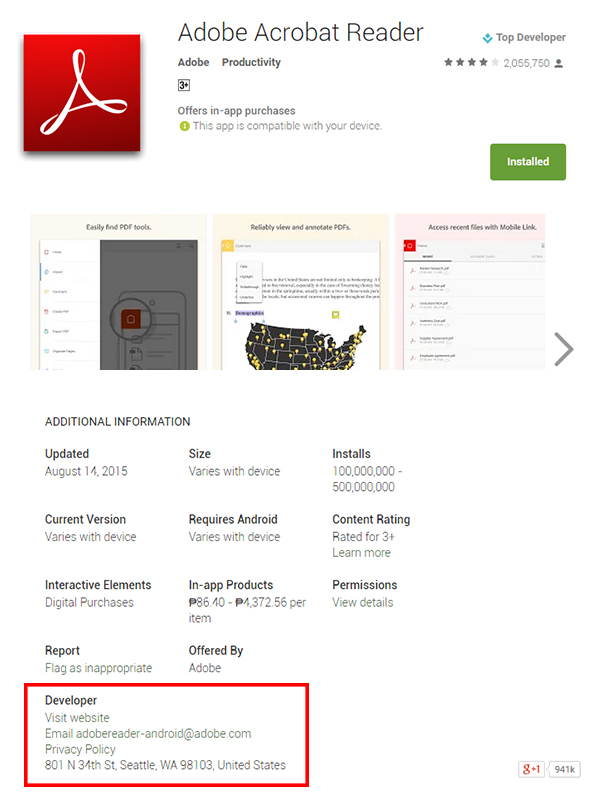As a user, I want to make sure that if I have a problem with the app I downloaded, especially if it’s a paid app, there’s a customer support that can assist me. That’s why before I download anything, I always check if there’s a website, email address or links to social accounts included.
