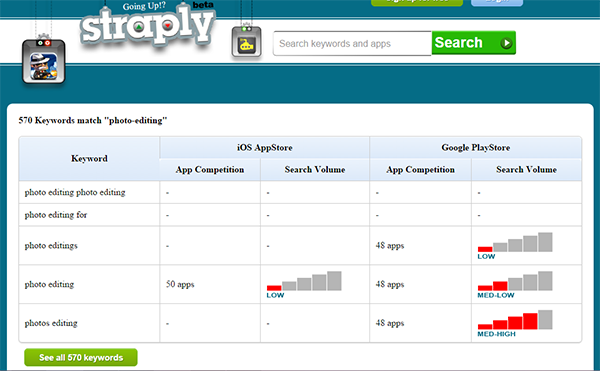You may also use keyword tools like Google Adwords Keyword Planner, and Keyword Tool, which are usually used for SEO, for the reason that majority of users are still using search engines like Google and Bing to search for applications.