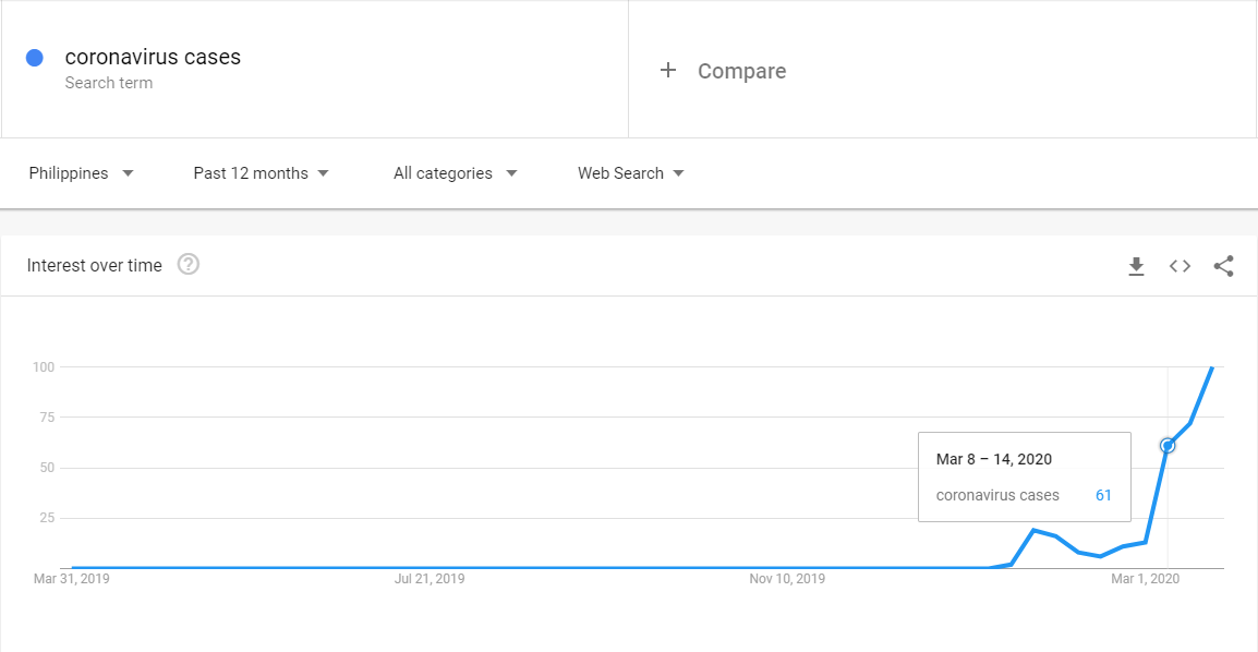 The first local transmission in the country was reported which gave way to the Code Red Sub-Level 1 that was raised as the virus cases continue to increase day-by-day. Search has also seen a change in behavior in the results as the interest of people who have been searching for coronavirus cases spiked up during this period.