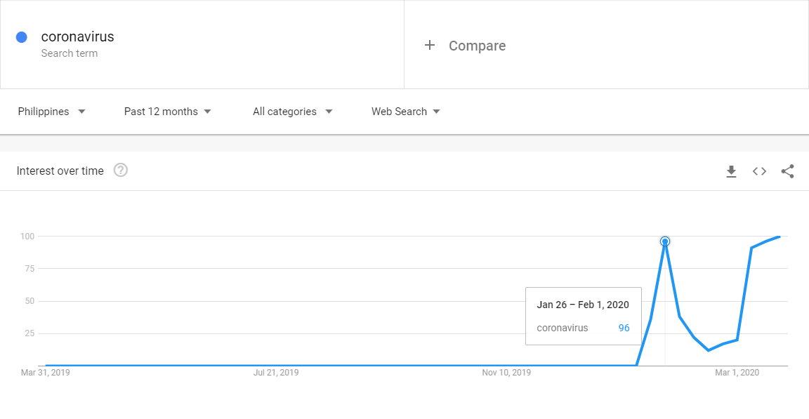 Looking back, the Philippines has not always been in this state of urgency. The first burst of news surrounding the virus started on the last day of 2019 but our country is just catching up on information about it. As I’ve said before, people have been holed up at home now more than ever so it only makes sense that they have been using Google to stock up on news about it.