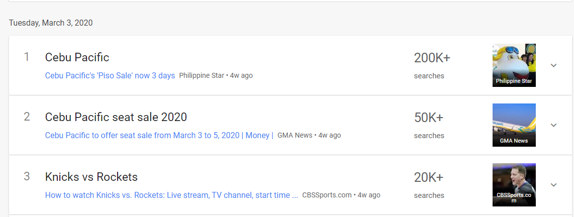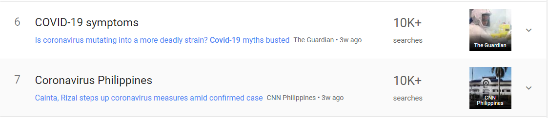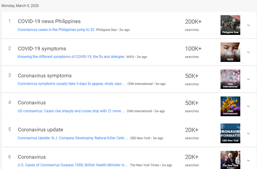 Incidentally, this is the period when coronavirus trending topics occupied search as evidenced by these tending searches on March 9: