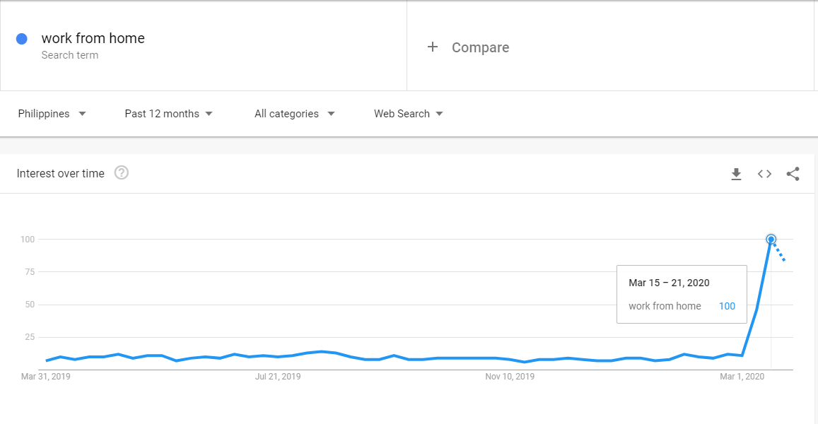 Private sectors resorted to flexible work arrangements due to the suspension of public transportation and the nationwide lockdown. There is a surge of interest for work from home query maybe from employees who would like to learn more about their new work setup.