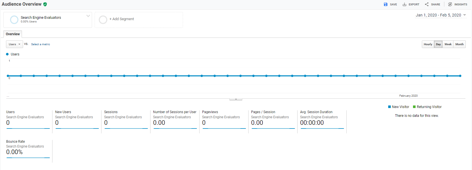 Check the audience overview for this particular segment. Currently, I do not have raters visiting the site yet but I expect it to have 2 – 3 users that will come once this has fully rolled out. You might have noticed that it has a green symbol beside it since the duration of tracking is condensed.