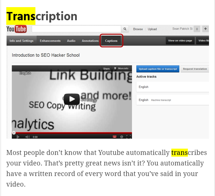 We have covered content transcription in our YouTube SEO guide, where we discussed that it is one way to help your videos become more searchable. While this has been discussed in detail a good number of times, there are still a lot of users that do not transcribe their videos or podcasts. While transcription may take a good amount of time to accomplish, this allows your content to become more accessible to users, especially users who have visual and hearing impairments.