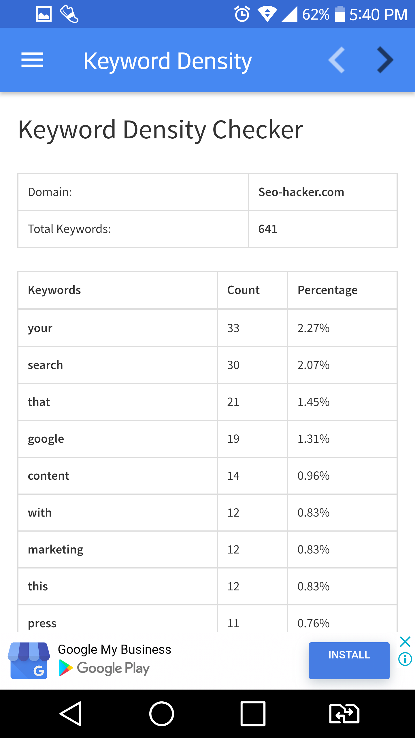 While this may not be an in-depth tool that allows you to track rankings further, or provide you with more keyword choices, this is a handy app to have to provide you with quick data in a hurry.