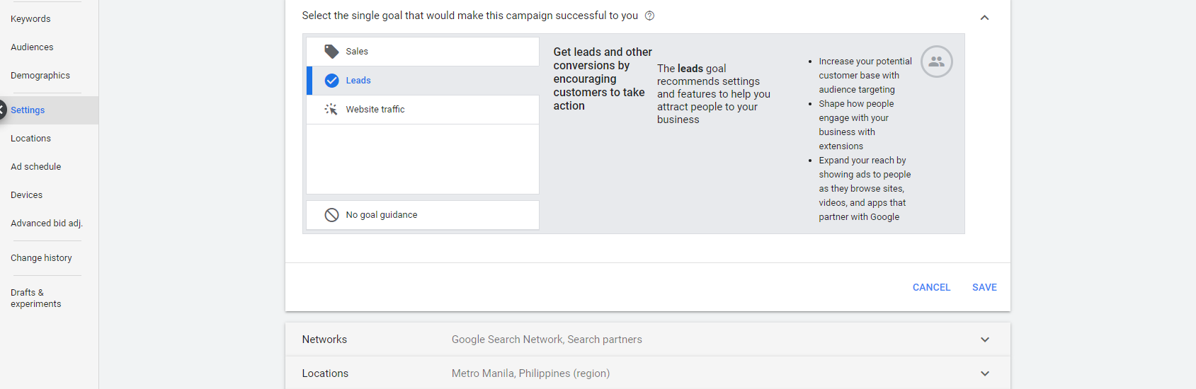 One way to be on top of this is to set your goal right for Search, Display, and Video campaigns. Follow the steps below to make sure that you are targeting the right goal for your campaign: