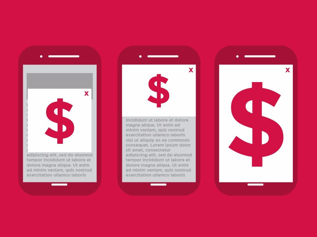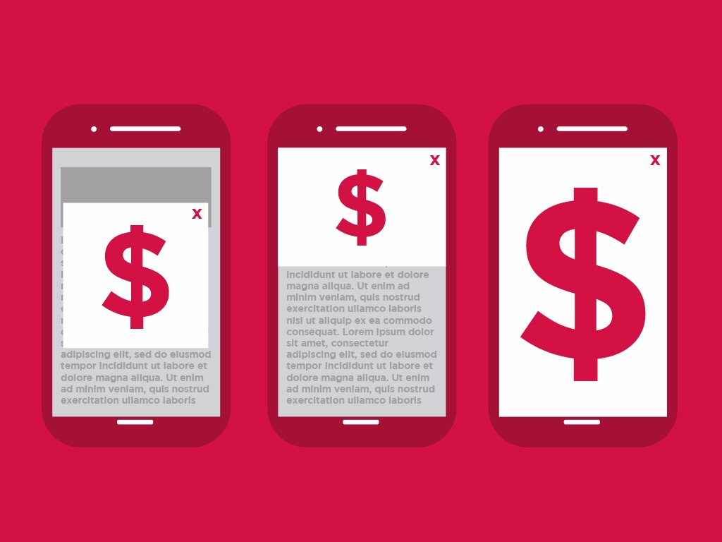 - Classic interstitial and splash advertisements that interrupt the user when they are navigating through your pages on their way to the homepage.