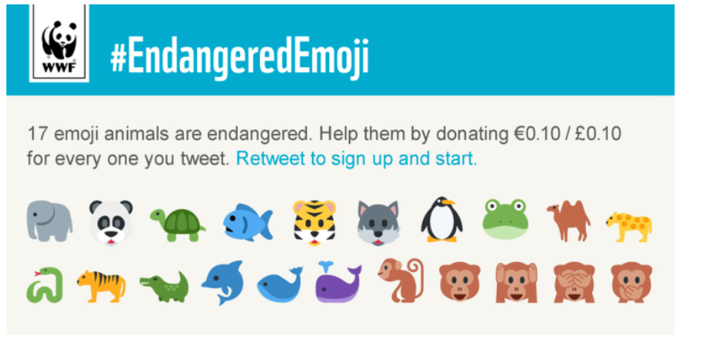 An example of a more serious social media campaign is WWF’s #EndangeredEmoji, which promotes awareness of the world’s most endangered species.