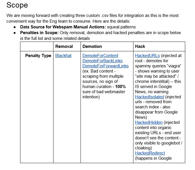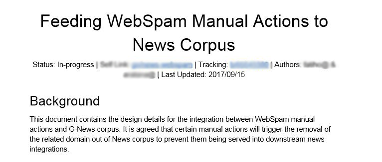 Another document that was in the Fake News folder is a document on integrating the WebSpam manual actions to the Google News Corpus. The WebSpam team is Google’s hand in handling reports on spam, paid links, and malware.