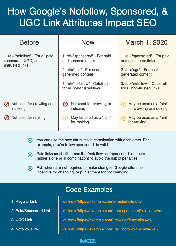 At Moz, Cyrus Shepard posted a good infographic to summarize all of the changes to nofollow, sponsored, and UGC.
