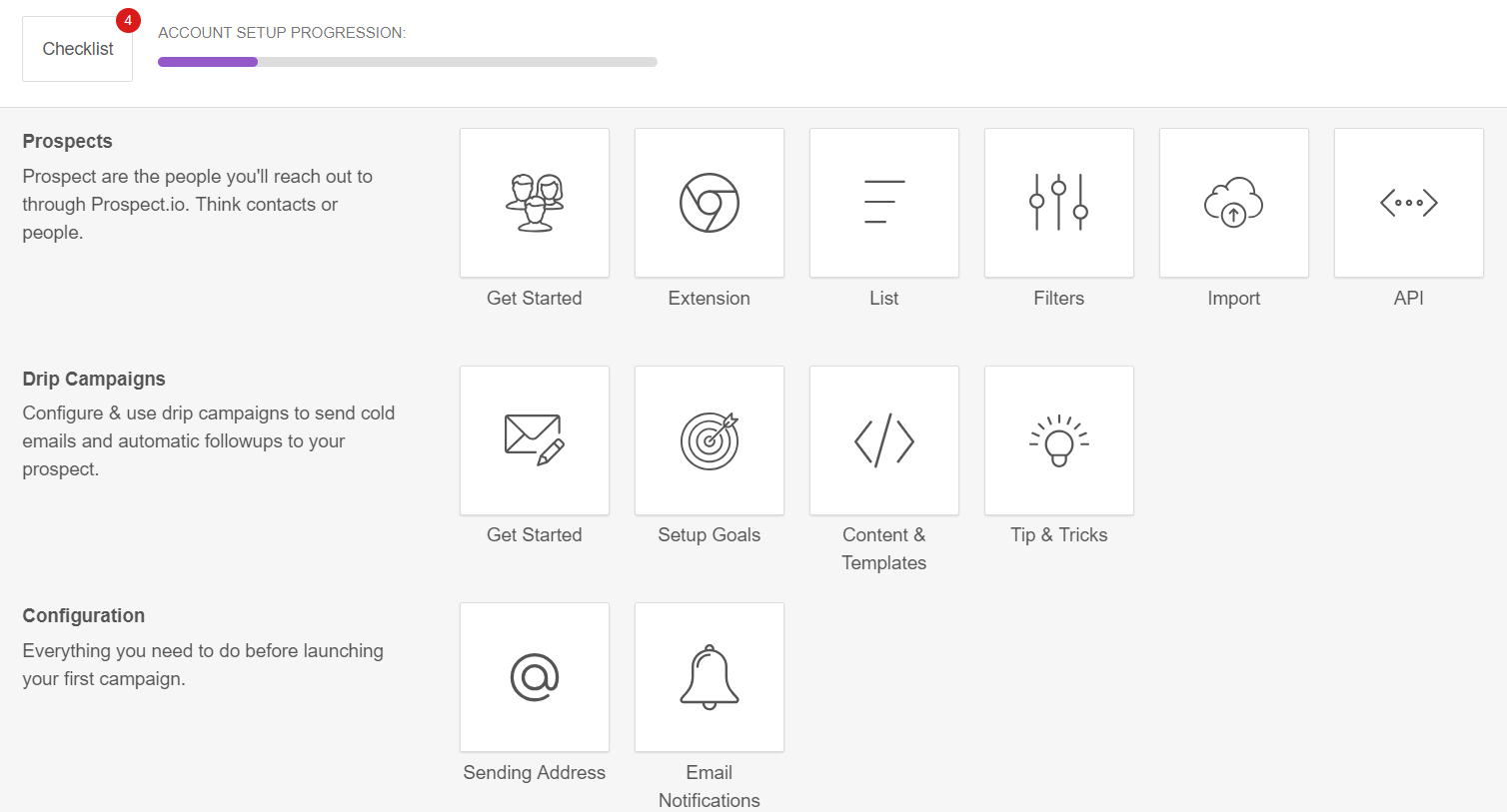 After getting your account registered, Prospect.io will guide you when it comes to setting things up, such as adding contacts, creating lists, adding your sending address, and eventually sending your first set of emails. While having a guide is common on most SEO and digital marketing tools, Prospect.io’s setup guide and checklist are more comprehensive, as it helps you understand each element with more detail.