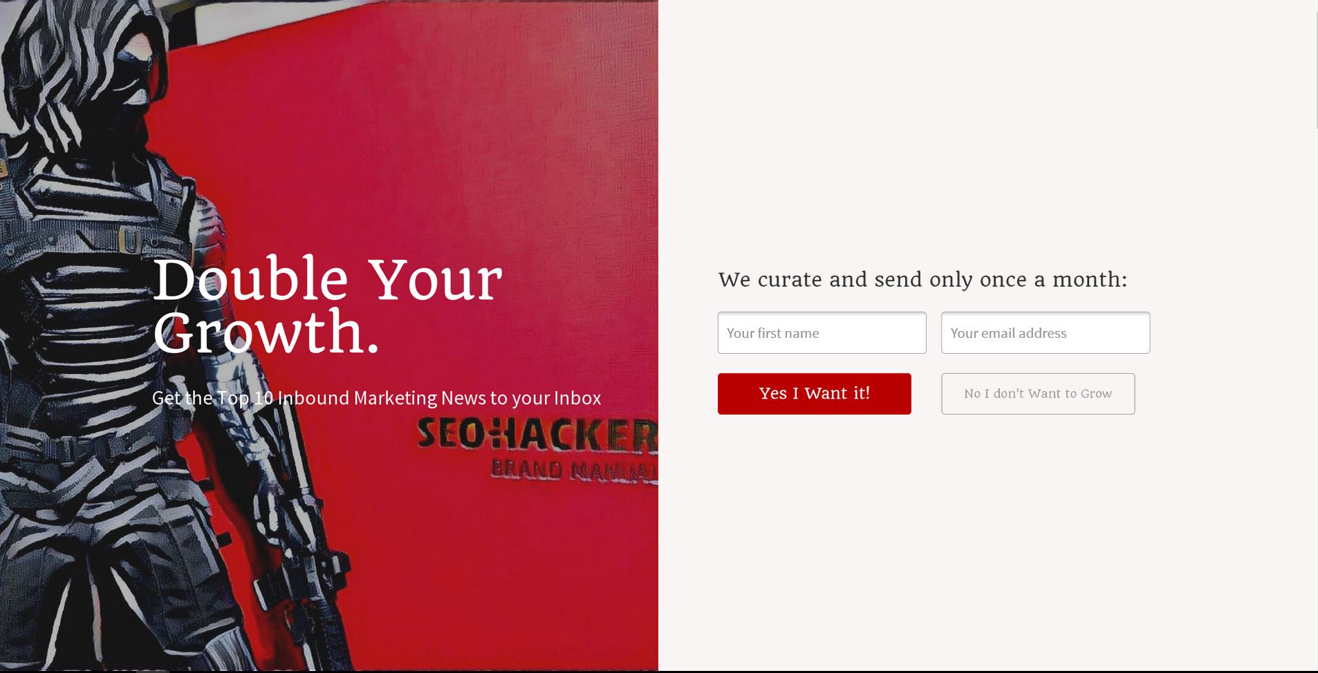 Over here at SEO-Hacker, we have our own welcome mat. Check it out: