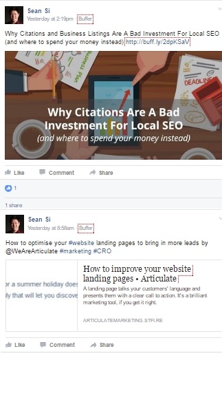 For example in the image above, if you’re scrolling down and browsing your social media feed what’s the first thing you’re going to see? Of course it’s the one with the featured image. That’s how visual cues work, they direct the human eye where you want them and it’s really effective in increasing your click rate.