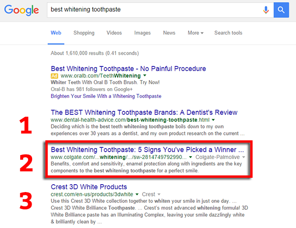 In many cases, people will choose the second or the third spot regardless of its position because they recognize and trust that brand. As more and more people make this same decision based on their prior experiences reading your content and interacting with your brand, search engines see your site as more useful and valuable and therefore boost it up the rankings.