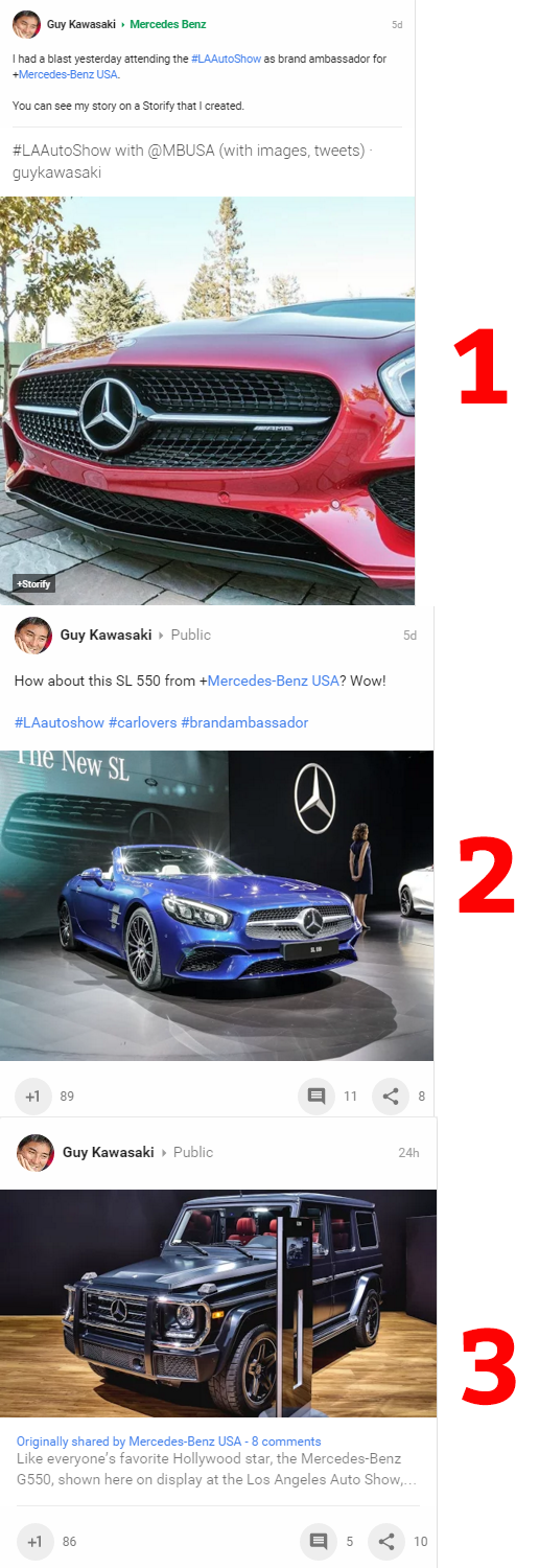 Guy Kawasaki believes in Mercedes Benz. Mercedes Benz doesn’t do the storytelling, instead they let people (who believe in them) do the storytelling.