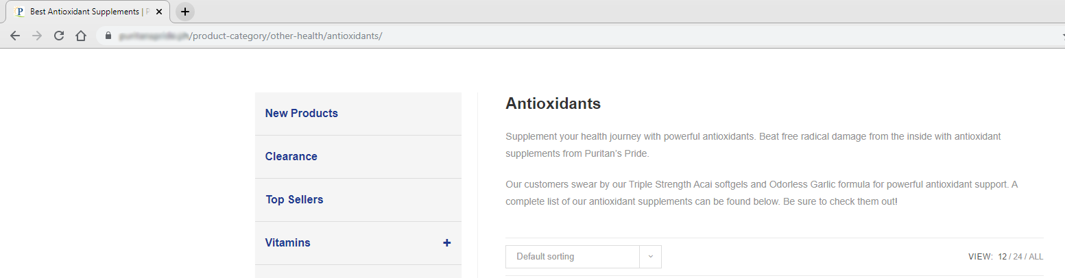 To give you an idea, here’s an example. For a website that is selling vitamins and supplements, rather than just using Vitamins and Supplements for sale in the title tag, I placed keywords in each of the product category pages.