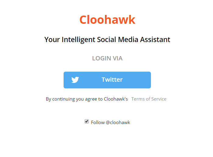 Signing up for Cloohawk is very simple, as you only need to sign-in your Twitter account.