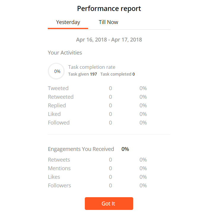 You can monitor and track the number of tasks that you have been doing by taking a look at the Performance Report. This helps you view the amount of activity that you have been doing with your account.