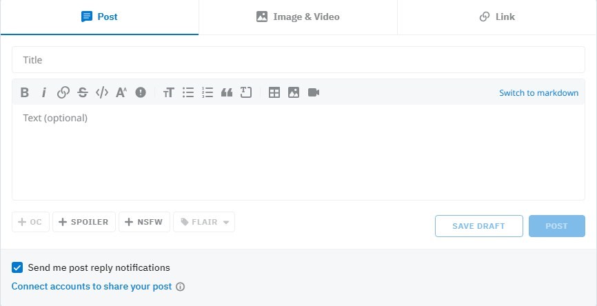 However, users can submit text posts known as self-post. It enables you to submit your original content to drive quality traffic to your website. Redditors can upvote or downvote your submission and the concept is known as karma.