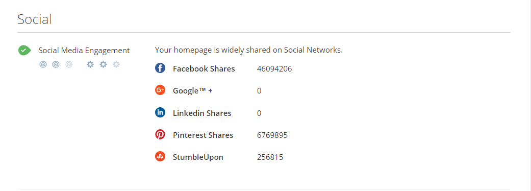 This section is about your website’s presence and activity on social media websites like Facebook and Twitter. This shows you the amount of shared and posts related to your website.