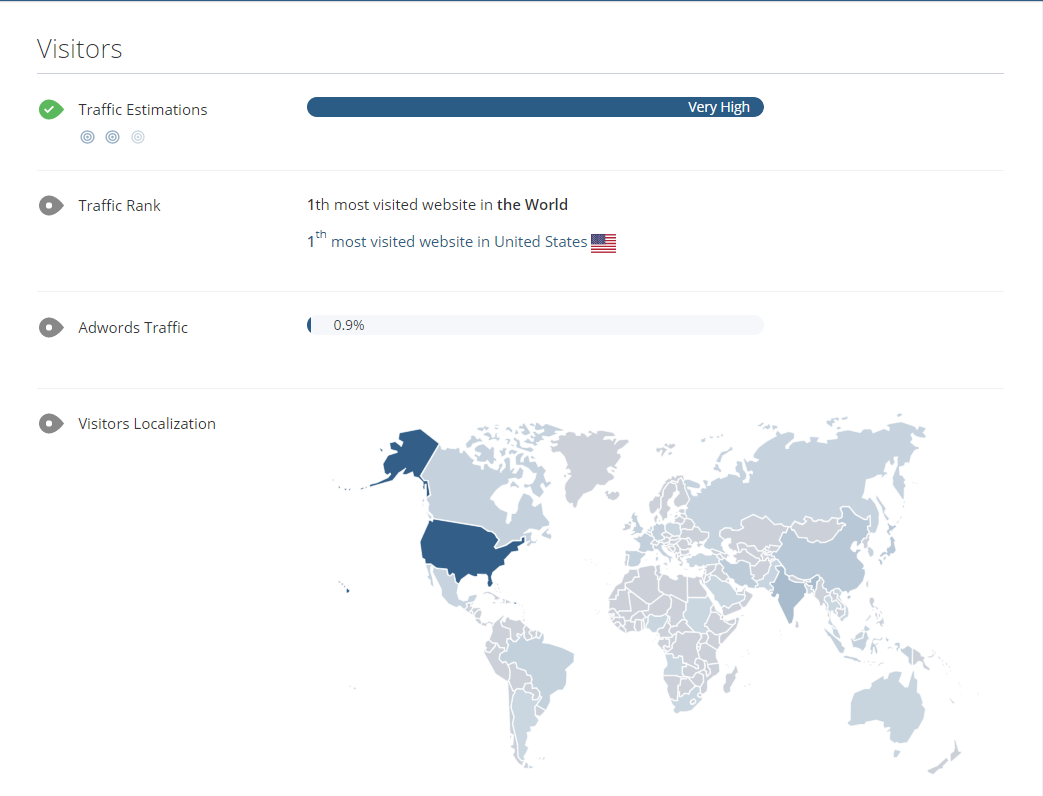 The last section of the review, this part shows the the amount of traffic that your website receives on a regular basis. Along with that, you are able to see the locations where traffic for your website is the highest. This is a handy feature that helps you optimize your website to cater to some of these locations, and know your audience more.