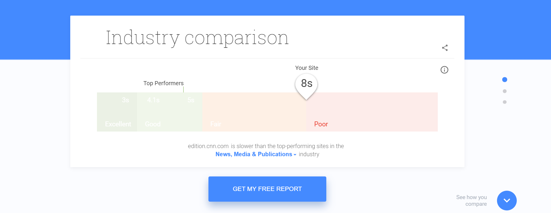 You also get to see the industry comparison, which compares your loading time to other similar websites. This is an essential indicator to help you see how close or far you are from the best loading speeds.