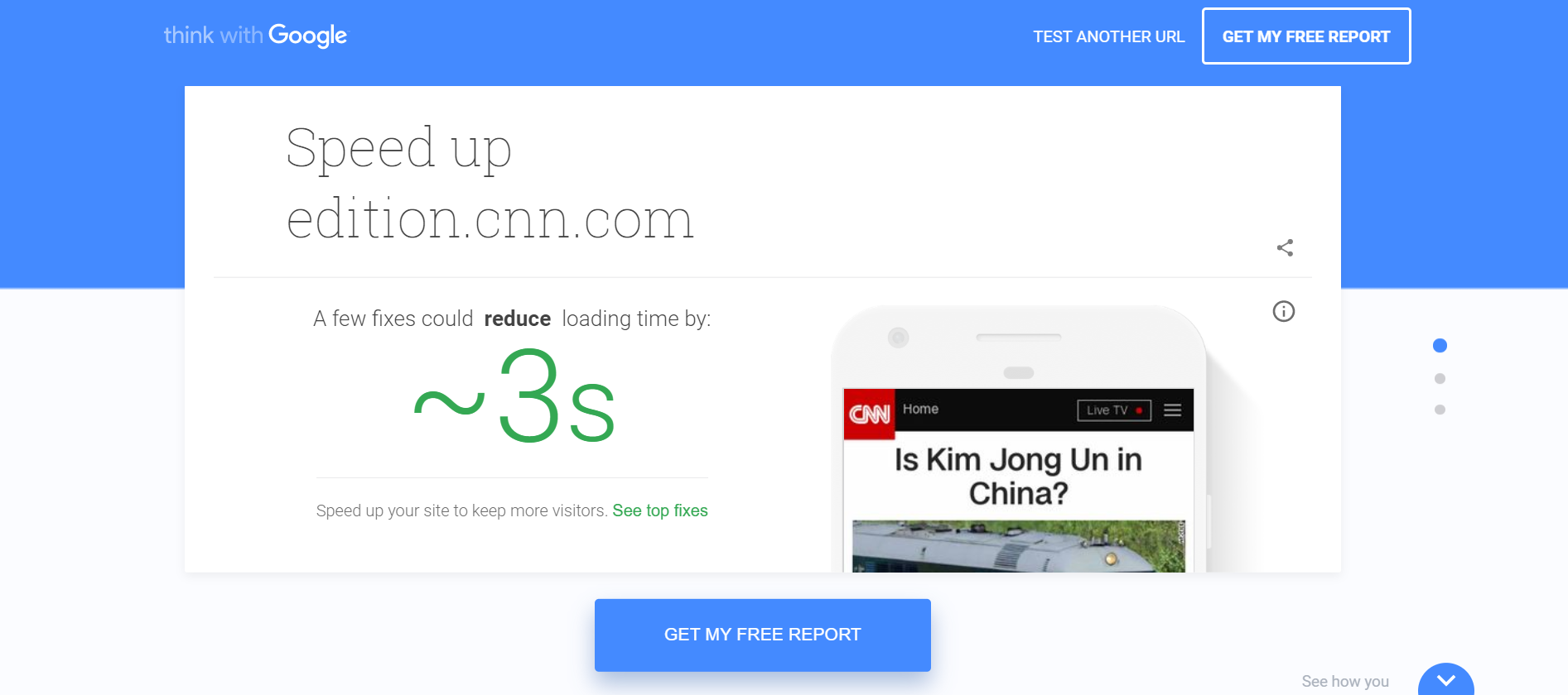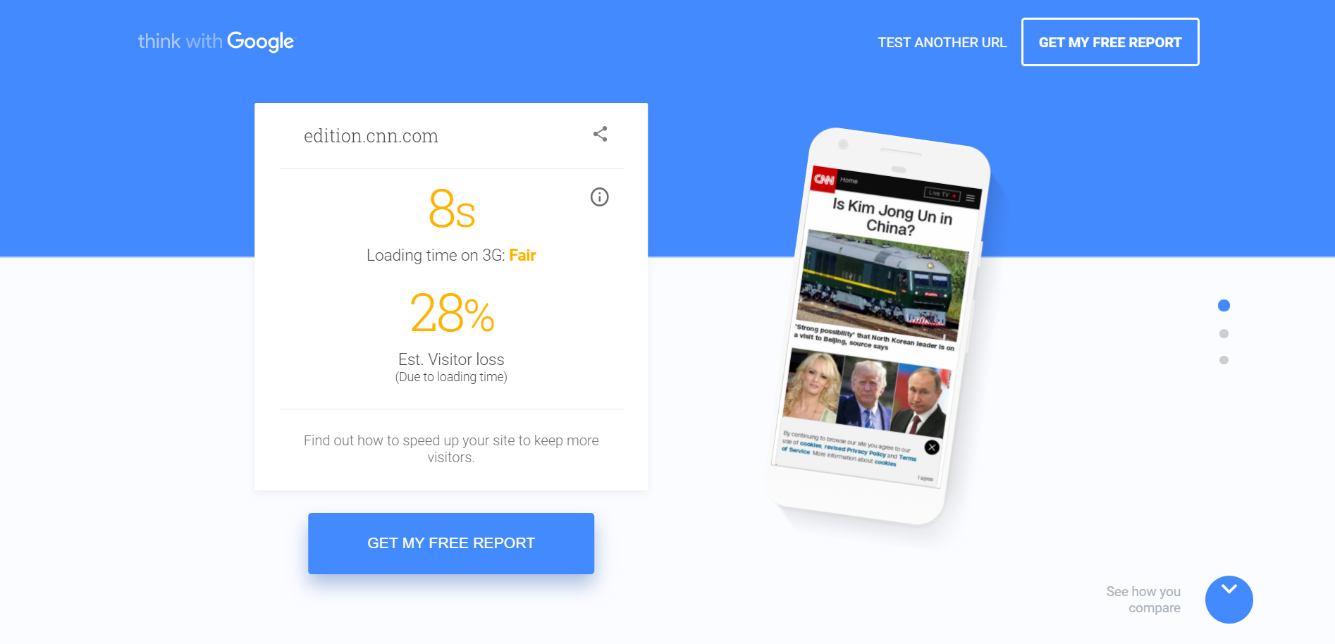 Site speed is one of the most important ranking factors, as the user experience begins once the website starts loading. Loading speed can spell the difference between a high traffic and reliable website, to a slow and low traffic one. If you want a very quick look at how fast your website loads, Test My Site is a handy little tool that helps you do so.